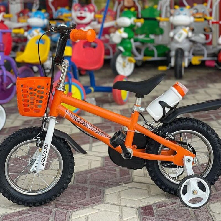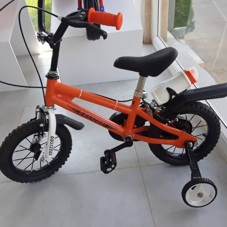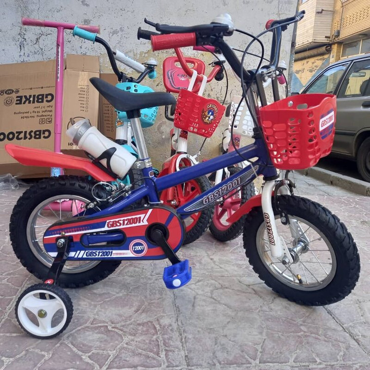 دوچرخه استاندارد سایز ۱۲ طوقه آلومینیومی گارانتی شرکتی همراه با لوازم(قمقمه،سبد،کمکی) قابلیت تنظیم ارتفاع از زین و فرمان مناسب برای سنین ۲ تا ۷ سال لاستیک بادی