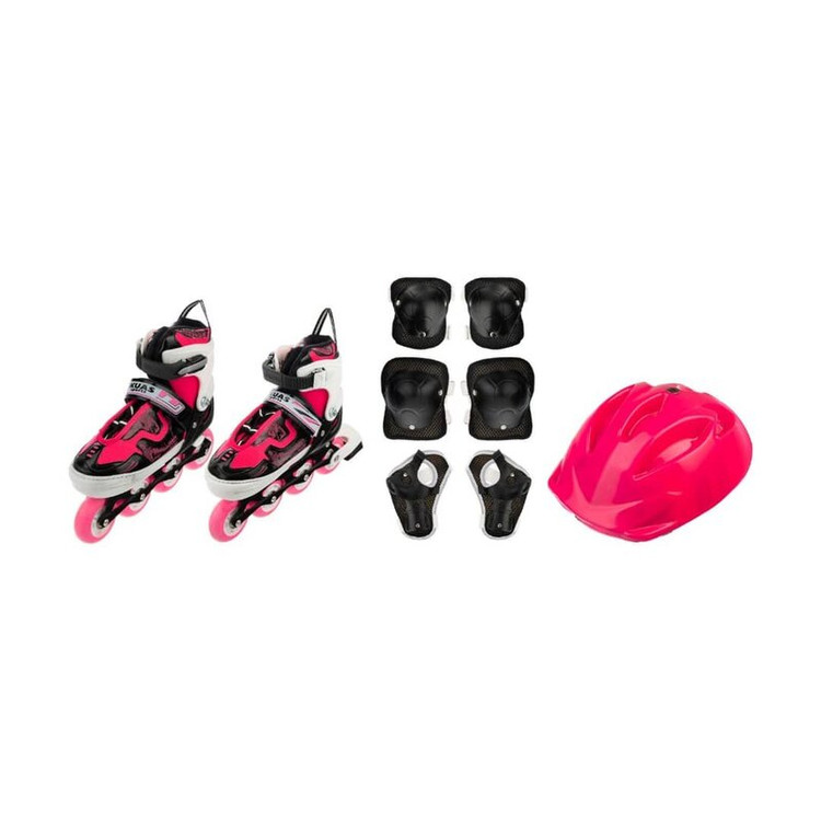 اسکیت چرخ ژله ای چرخ مشگی با لوازم ایمنی مچ بند،زانو بند،ارنج بند،کلاه و کوله فوتبالی