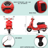 موتور شارژی وسپا AX3056 دارای دو موتور و گیربکس در چرخ عقب می باشد که اصطلاحا به آن موتور شارژی دو موتوره می گویند که قدرت و سرعت بسیار هیجان انگیزی در کنار ایمنی کامل به کودک شما می دهد.دوچرخ کمکی که زیر جا پایی این موتور در نظر گرفته شده از افتادن موتور جلوگیری میکند و باعث ایمنی آن می شود. به روی فرمان این موتور درگاه یو ای پی کارگذاری شده که کودکتان به غیر از موزیک های فارسی و زیبای خود موتور بتواند موزیک ها و آموزش های مورد علاقه خود را نیز فراگیری کند. درست است که این موتور هم مانند مشابه های دیگر آن دارای دسته گاز نیست اما پدالی زیر پای کودک تعبیه شده که با فشردن آن موتور شروع به حرکت میکند. همینطور به روی فلاپ جلوی موتور دکمه ای برای هدایت موتور به جلو و عقب نیز کارگذاری شده است. باطری های به کار رفته در این موتور دو عدد 6 ولت 4.5 آمپر به صورت سری با خروجی 12 ولت است که با شارژر 12 ولت آن می تواند حدود یک تا دو ساعت با 8 ساعت شارژ به کودک شما سواری دهد.