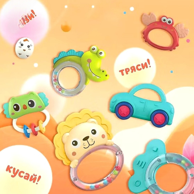 مشخصات ست جغجغه و دندان گیر کودک مدل حیوانات بسته 7عددی کد 608-79