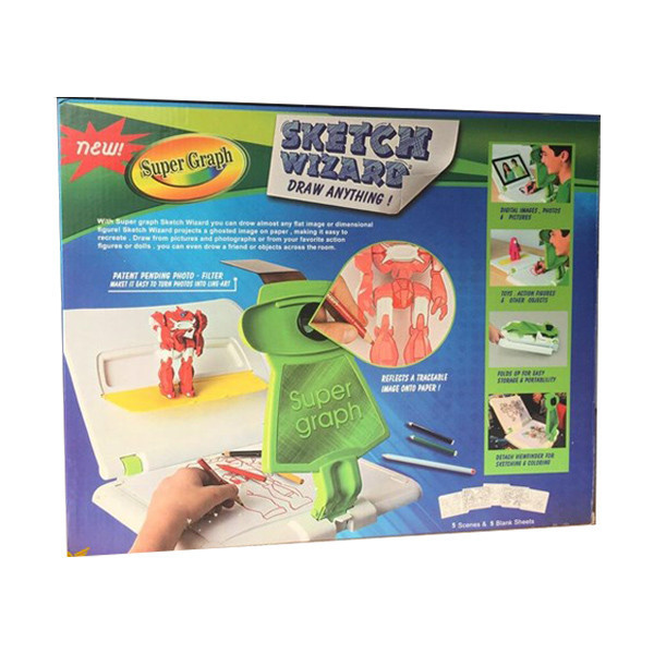 سوپرگراف یک دستگاه جادویی جذاب باکارایی بسیار بالاجهت اموزش ویادگیری نقاشی و طراحی برای بچه های۵سال به بالاست. سوپرگراف ازبهترین مواداولیه پلیمری ABS ساخته شده و بسیار محکم و ماندگار می باشد.داخل بسته بندی یک بسته مدادرنگی ،یک عدد مدادمخصوص نقاشی وطراحی، سه عددبروشورکامل جهت راهنمایی کار بادستگاه به سه زبان فارسی،عربی،انگلیسی ،پنج عددتصاویر اماده شده جهت اموزش اولیه و پنج عددکاغذA4 جهت شروع به کار قرار داده شده است. بااطمینان میتوان گفت که سوپرگراف تنهادستگاهی است که هم برای اموزش ویادگیری نقاشی وطراحی وهم یک اسباب بازی فوق العاده جذاب برای بچه هامحسوب میشود. بچه ها بااین دستگاه بسیارراحت میتوانند سطح یادگیری نقاشی وطراحی واوج خلاقیت خودرابا ان به نمایش بگذارند ومی توانند به صورت کاملا حرفه ای نقاشی وطراحی رایادبگیرند،ونیازی به کلاس اموزش نقاشی وطراحی نخواهند داشت، همچنین این دستگاه باتوجه به کارایی بالایی که دارد برای بچه ها میتواند یک اسباب بازی بسیار جذاب باشد،چون نقاشی کردن باان محدودیت نداردوبچه ها ترغیب میشوند که تصاویر واقعی دنیای اطرافشان ،مثلا تصویر اعضای خانواده ودوستانشان ویاهرچیزی که دوست داشته باشندبا ان میتوانند نقاشی کنند و اوقات فراغت خودرابا ان سپری کنند. سوپرگراف یک کادویی جذاب وماندگار برای سالروز تولد ومناسبتهای گوناگون کودکان شما خواهد بود.