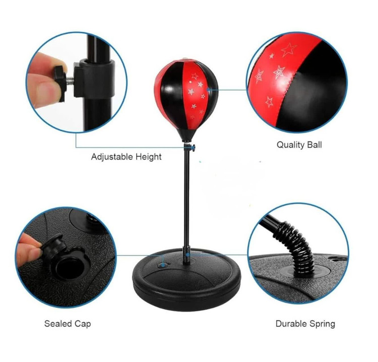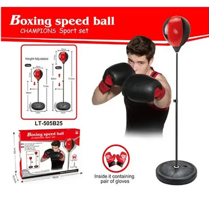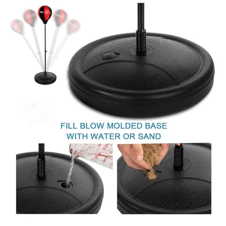 بیشترین ارتفاع 150 سانتی متر کمترین ارتفاع 68 سانتی متر قطر محفظه نگه دارنده 29 سانتی متر که با آب و شن می تونید پر کنید قطر توپ بالا 18 سانتی متر دارای دستکش بوکس دارای پمپ باد