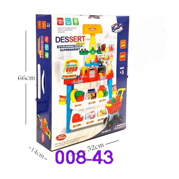 این محصول که از جنس پلاستیک تهیه شده است بسیار سبک است و در بر دارنده ی چند قطعه است که به راحتی سر هم می شود. شما می توانید با کمک ست اسباب بازی سوپر مارکت اموزش های لازم را در خصوص خرید، نحوه ی پرداخت پول به فروشنده، نحوه ی تعامل با خریدار و فروشنده و … را به کودک اموزش دهید.
